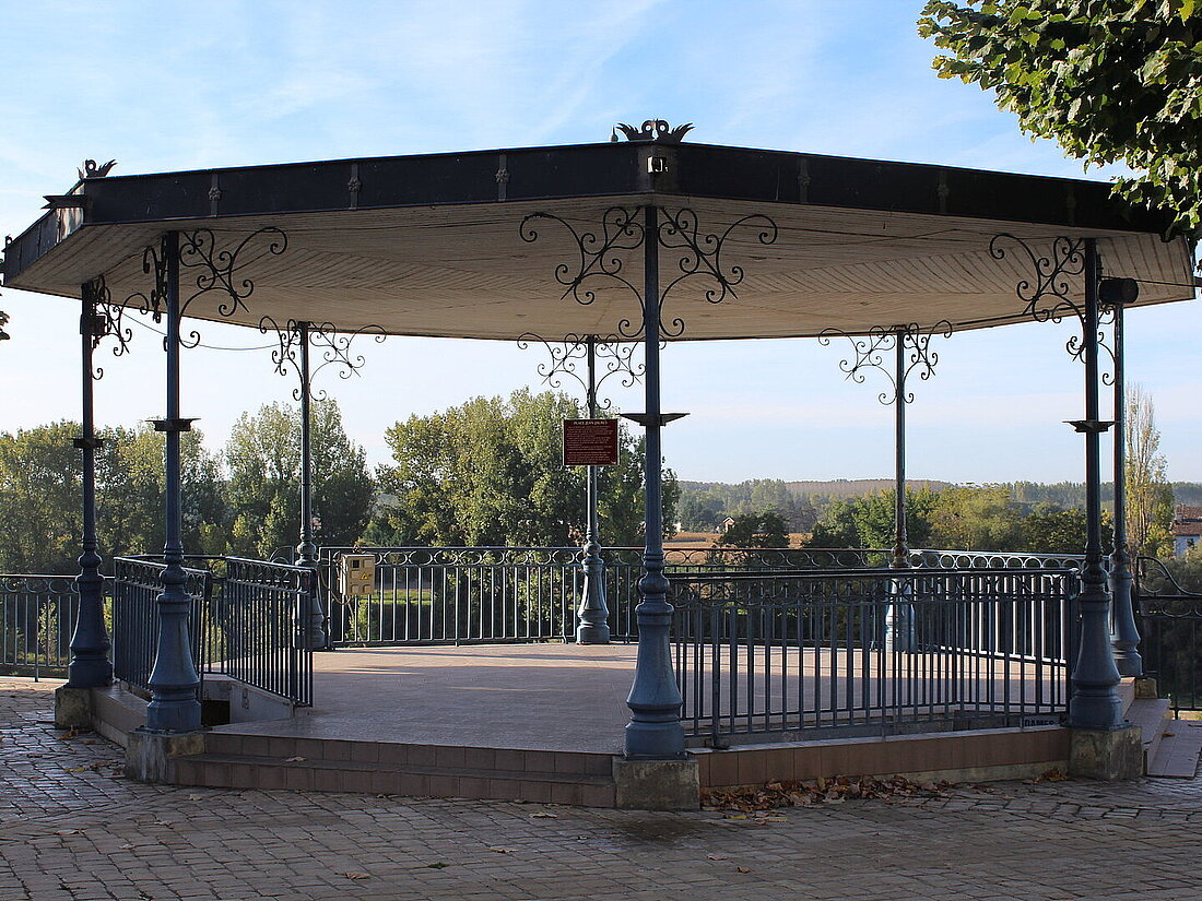 Une longue promenade s’étire en bord de Garonne, longée par un mur en pierre. La place du château ou place Jean Jaurès est ornée d’un kiosque à musique en fonte, construit en 1870 et positionné sur une dalle en porte-à-faux surplombant les quais, et offrant une vue exceptionnelle sur la vallée et le fleuve. S'il est vrai que ce kiosque fut le premier construit des départements de Dordogne et de Lot-et-Garonne, il était dans le jardin public. Il a été détruit et personne peut prouver que les éléments de cet édifice aient servis à construire l'actuel.